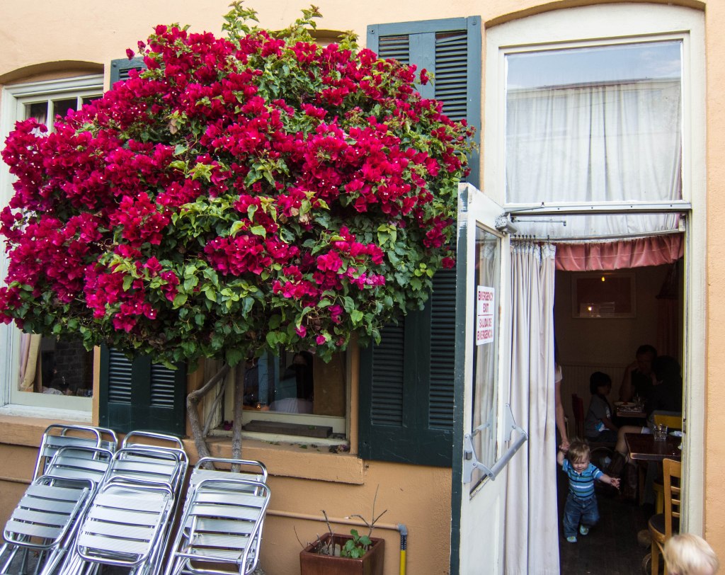 I ordered the iced tea, as usual, only to find that they offer “hibiscus ice tea”, which is a dreadful concoction that I instantly rejected, instead opting for hot tea and two glasses of ice. What is the attraction of hibiscus? Why not just give the customer what he ordered–iced tea?