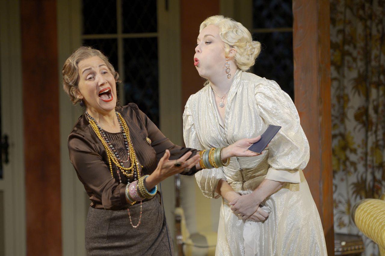 Rebekah Brockman as Edith and René Augesen as Ruth Condomine in Cal Shakes’ production of BLITHE SPIRIT, directed by Mark Rucker; photo by Kevin Berne.
