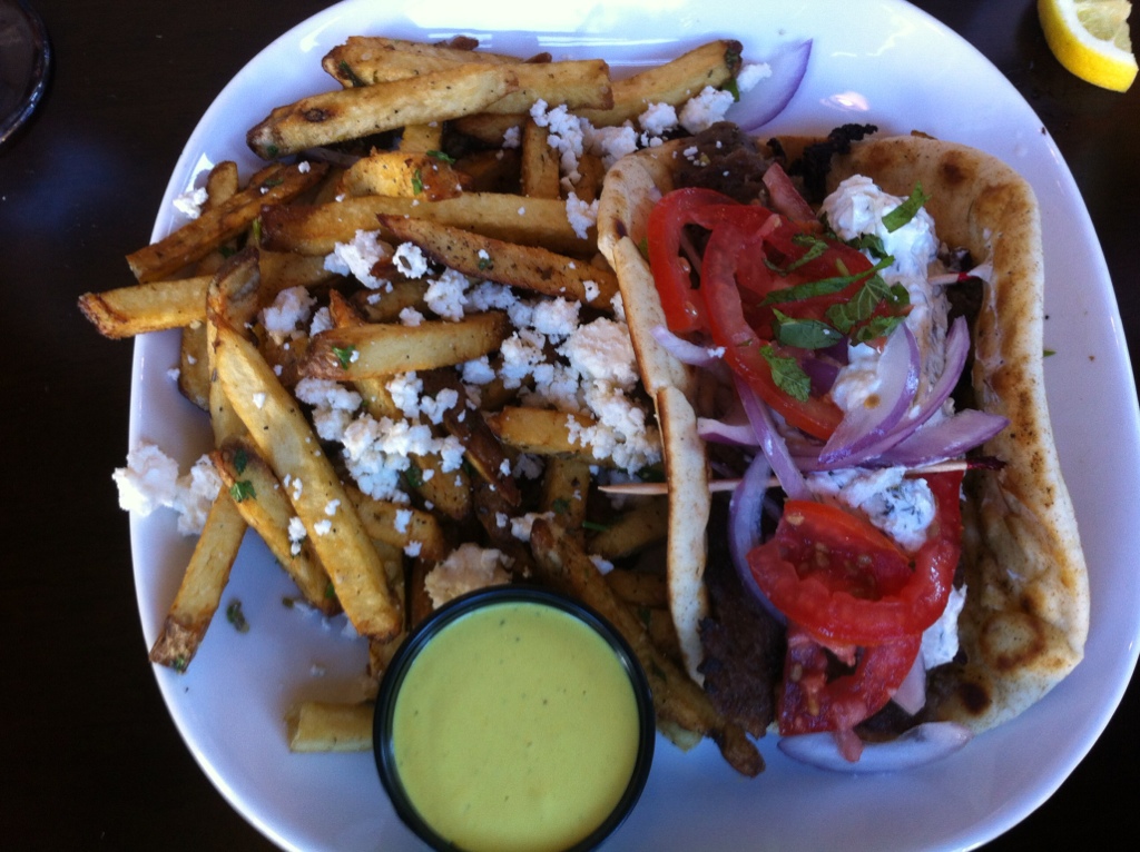 The French fries look good yet were curiously tasteless. Even the feta cheese they put on top of the fries didn’t help.