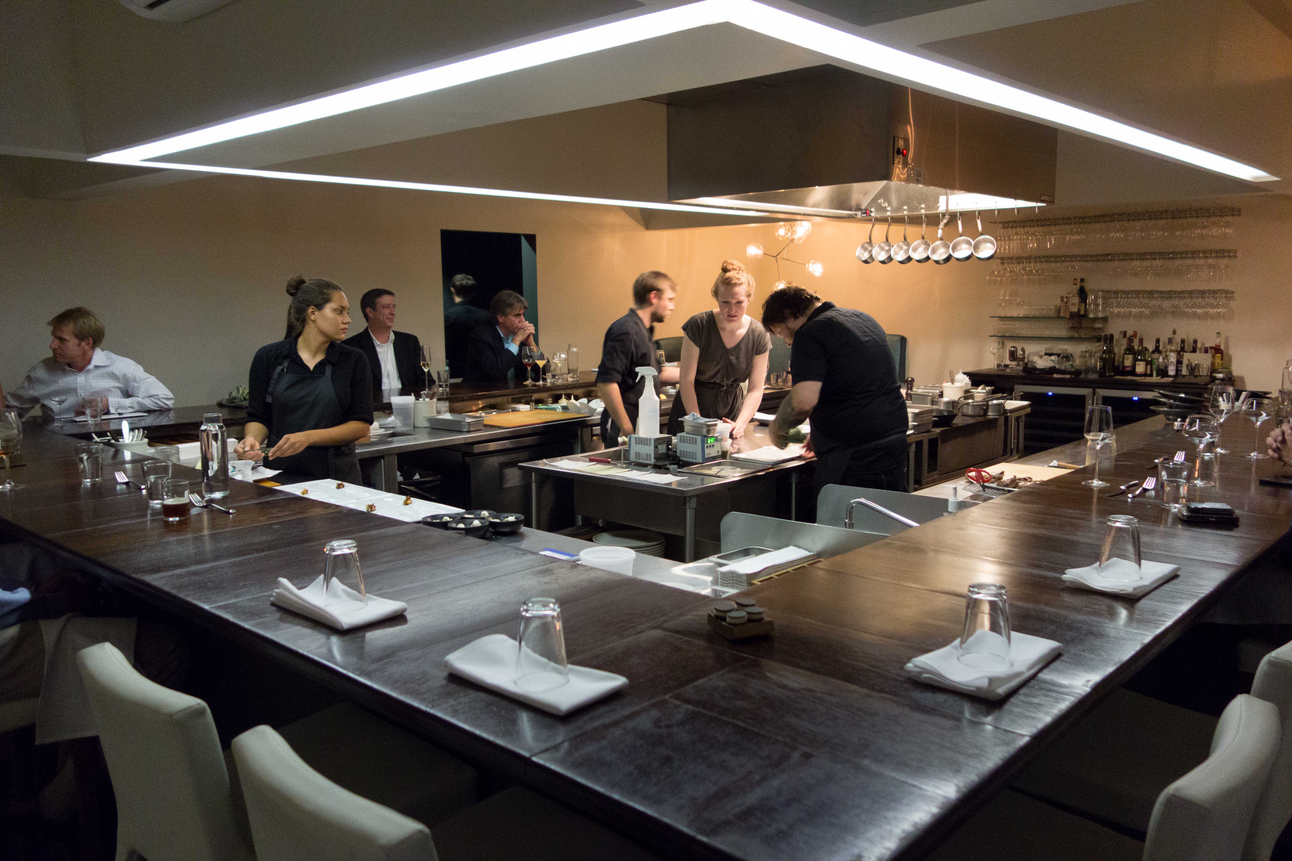 Thirty-two seats surround a U-shaped kitchen, where chefs Josh Habiger and Erik Anderson will prepare your meal as you watch.