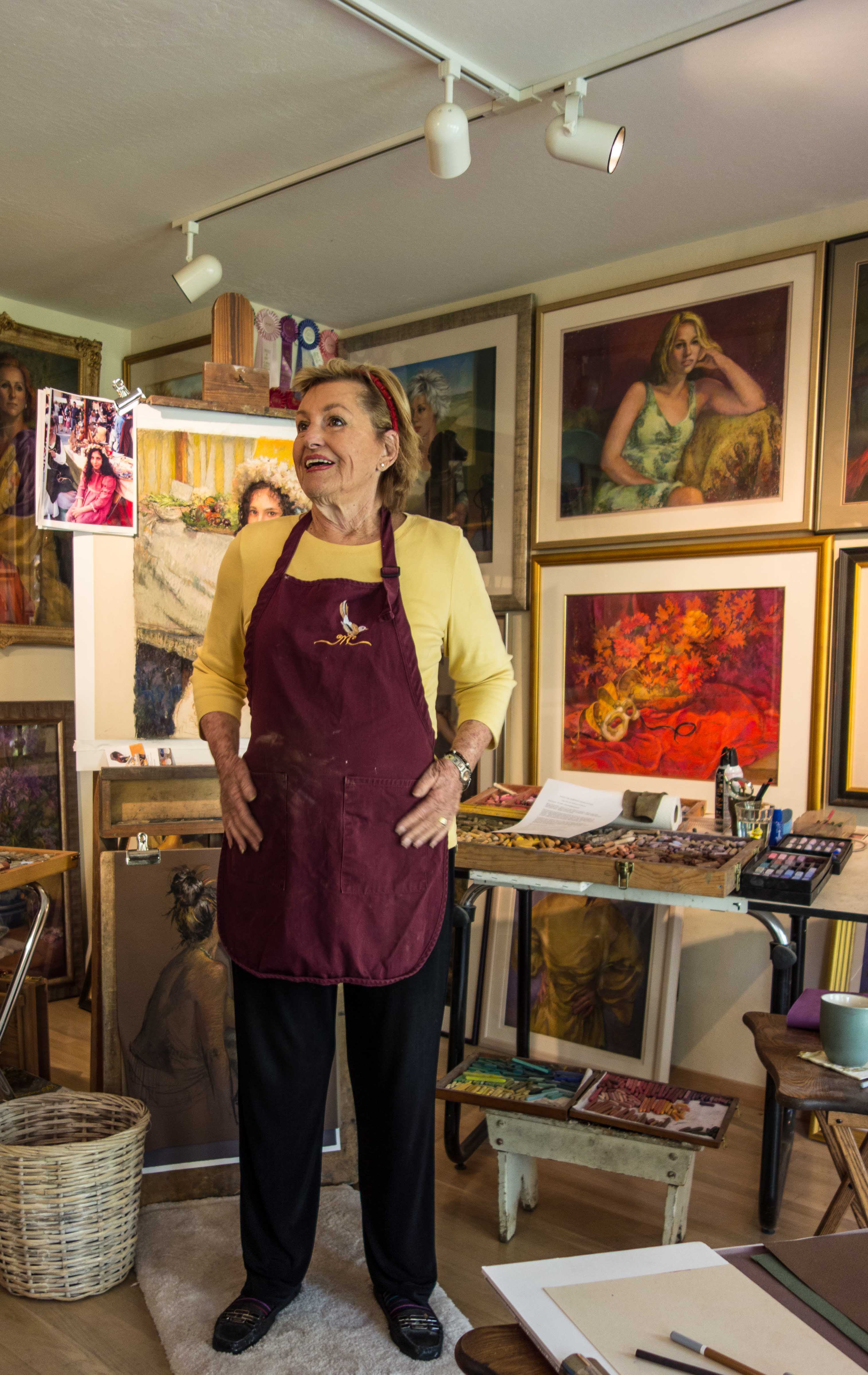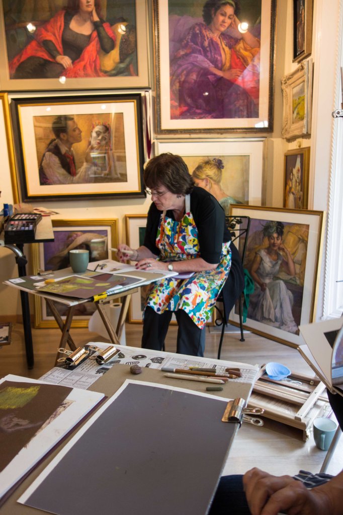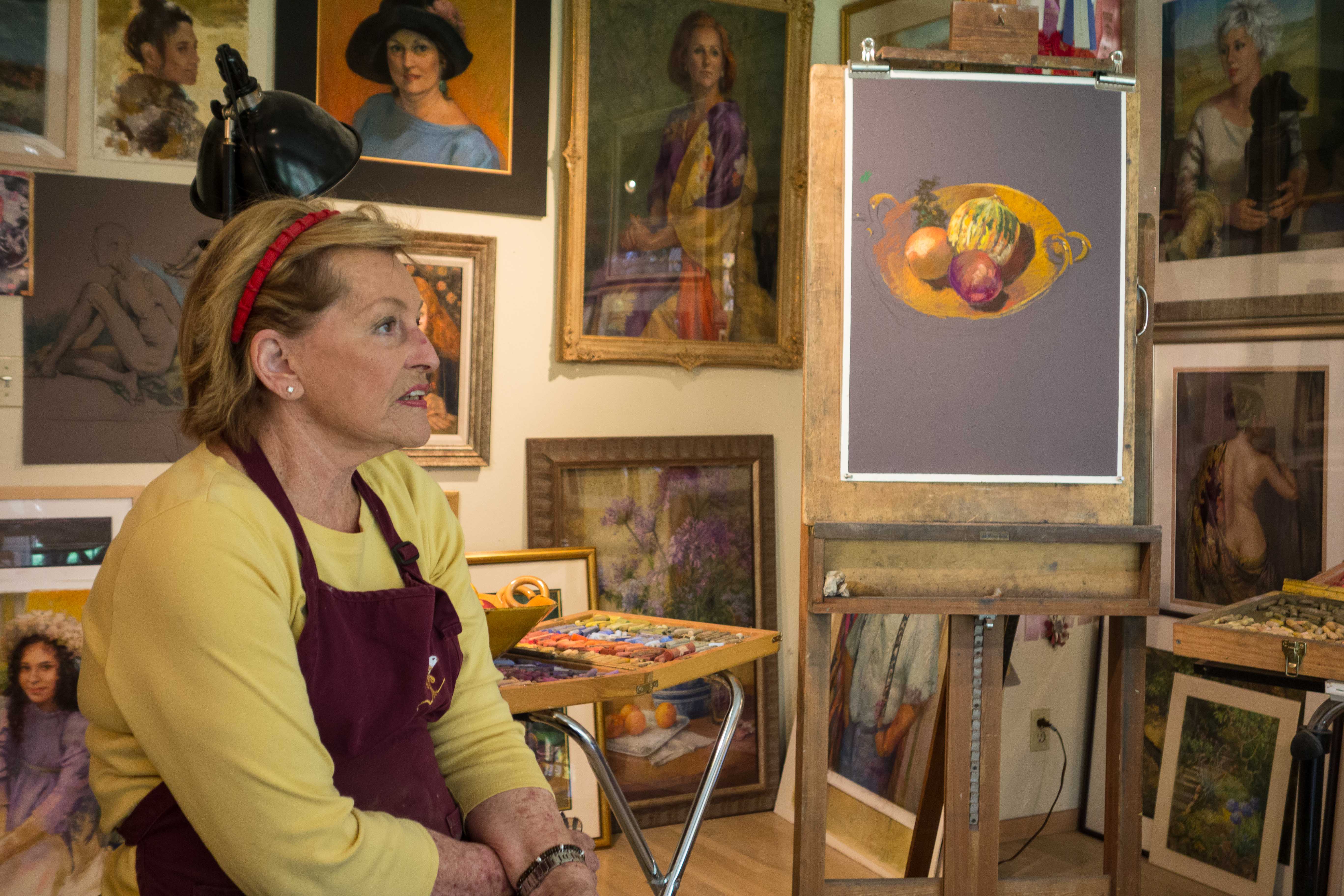 You go to charity galas, you end up buying things. Gail tends to buy admission to wine tasting parties she isn’t really interested in because she doesn’t drink red wine. I buy classes for things I don’t know much about. Today, I went to the home of Ruth Hussey, a nationally noted pastel painter, for a class on pastels. I”m still not an artist, but it was fun.