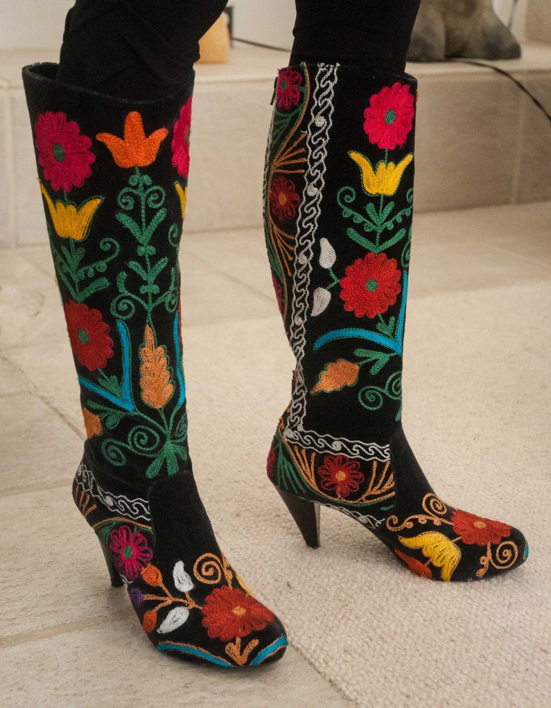 Gail’s older son, Ross, is married to the astoundingly beautiful Julie Benayan Blackburn. She is always a fashion plate, but she outdid herself today with these boots. I just had to share them with you.