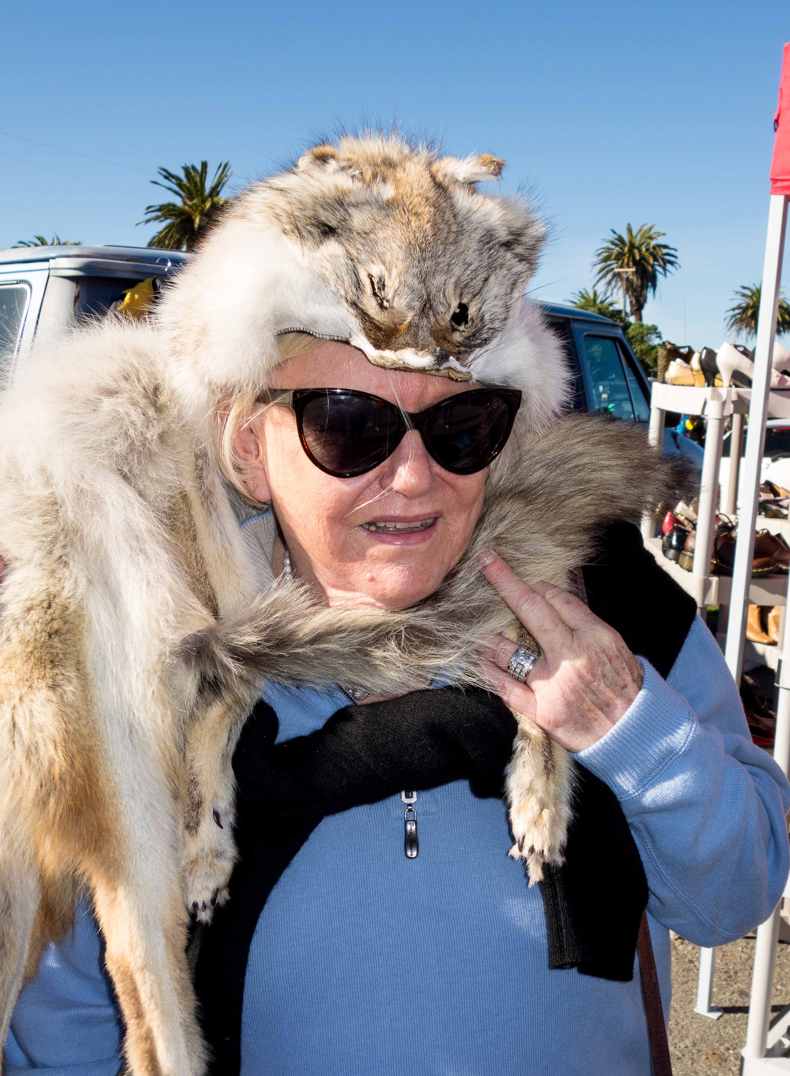People are friendly. We got involved in urging this woman to buy this hat. Then we got involved in trying to get the price down–which is harder when you have been praising the item, and how it looks on the wearer, to the high heavens.
