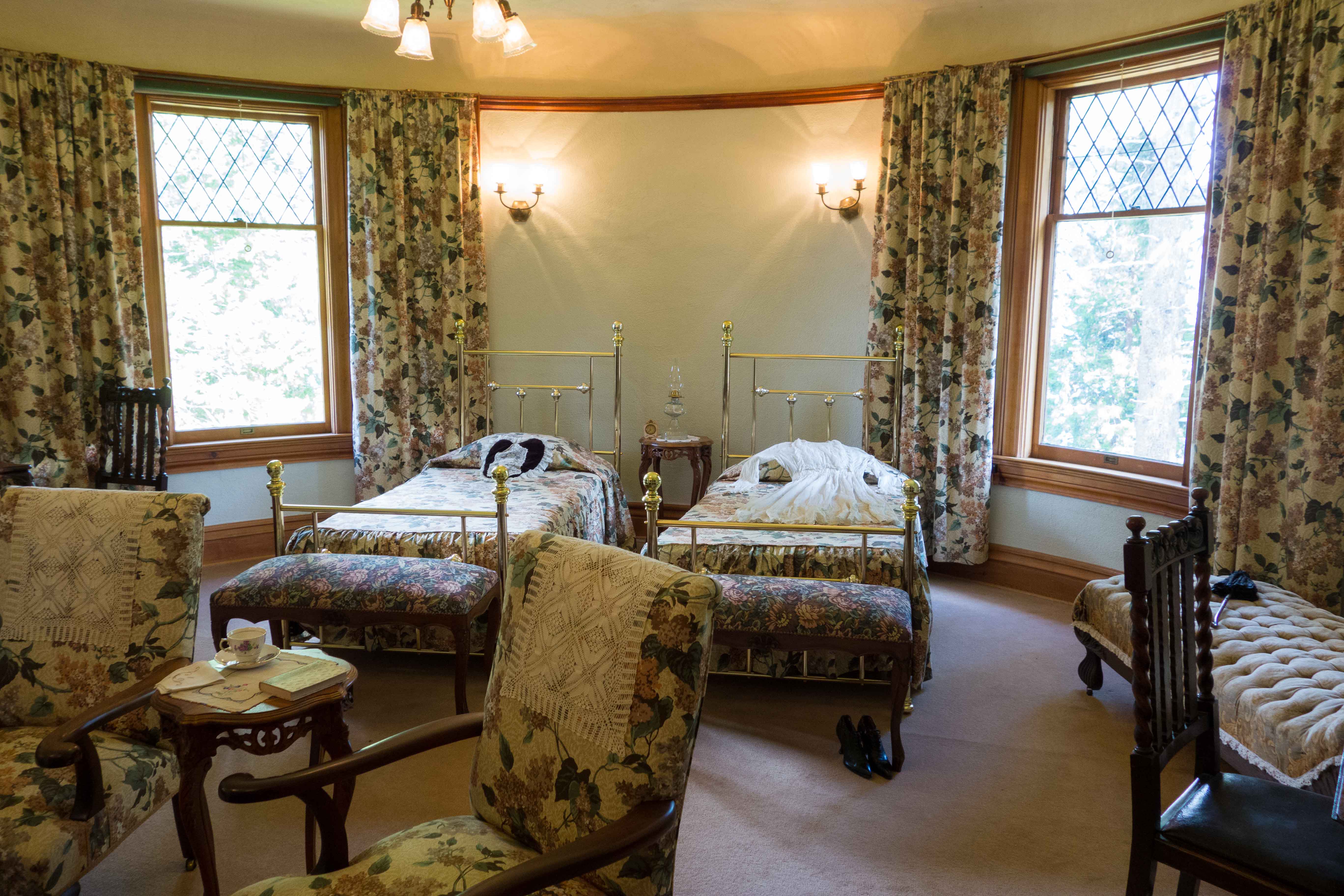 This was a master suite, re-done as the bridal suite when a daughter married. Note the twin beds.