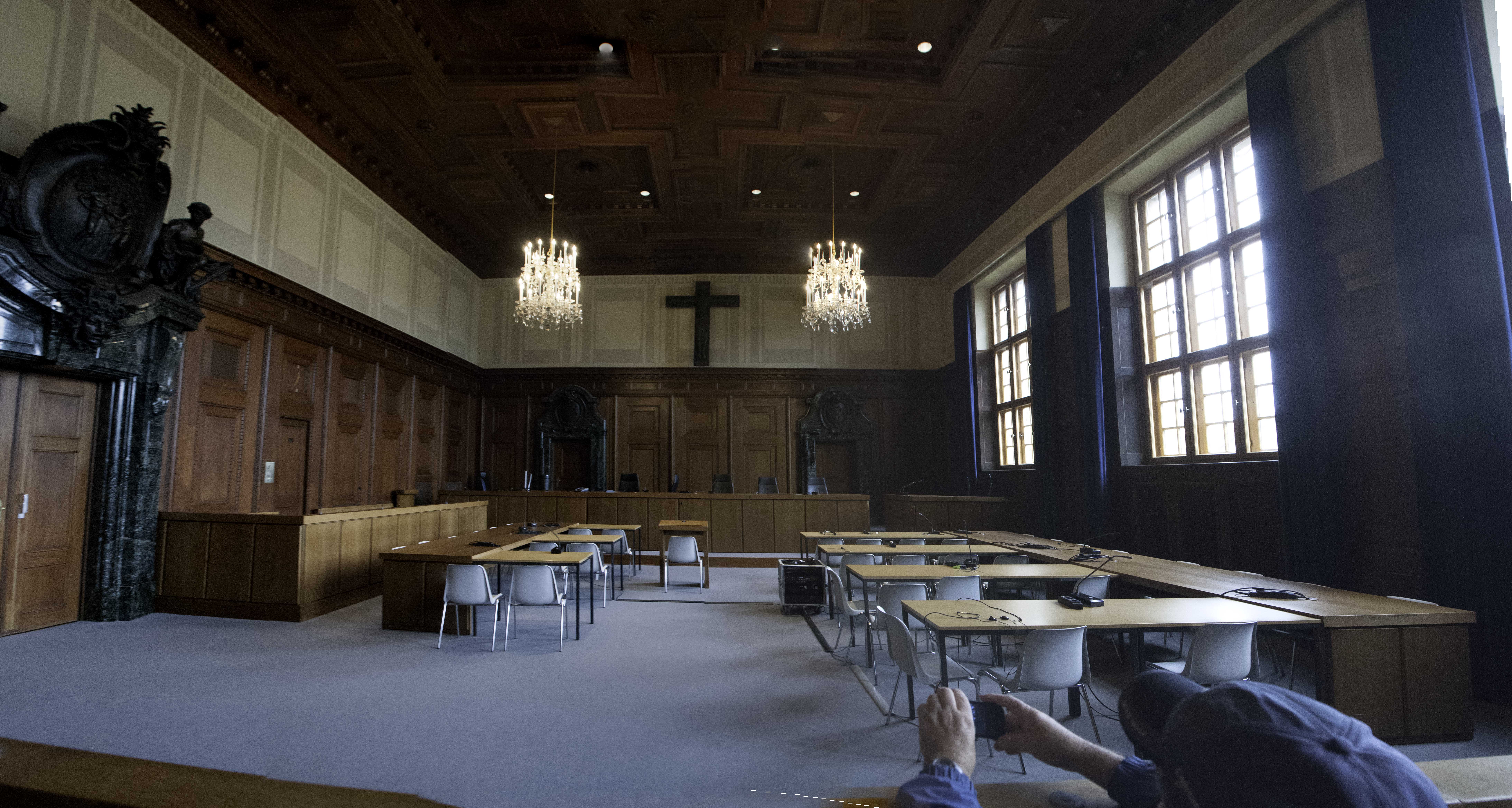 A panorama of the entire room. The crucifix is modern, and will be covered on request.