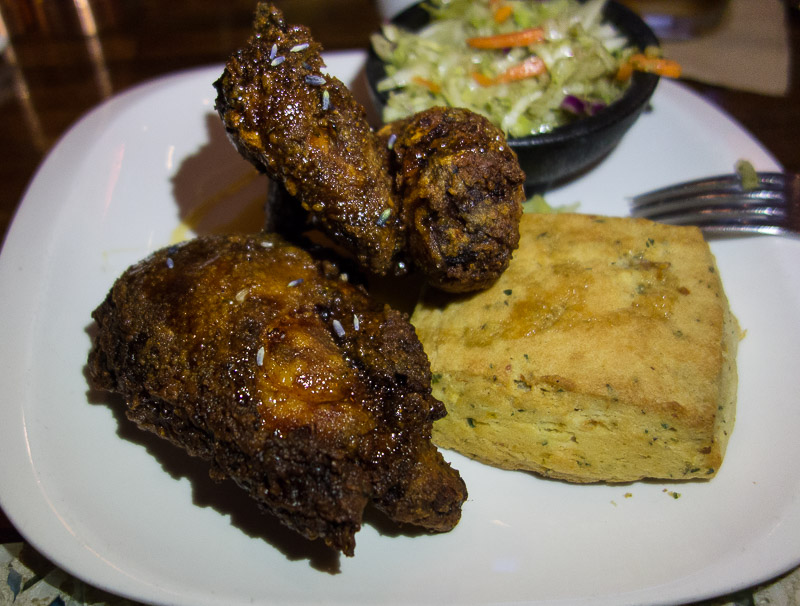 Fried Chicken, biscuit and some kind of slaw