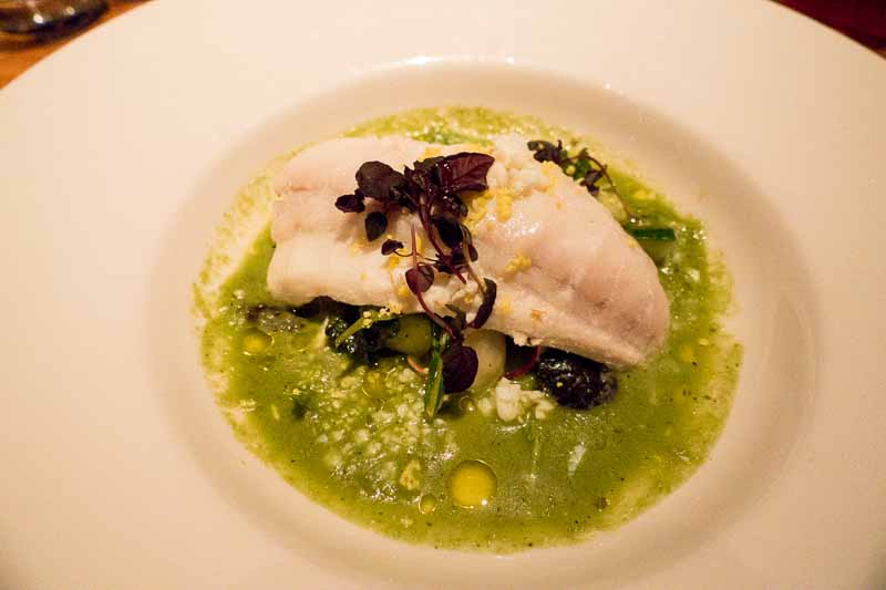Halibut, with asparagus gazpacho. Not a winner.