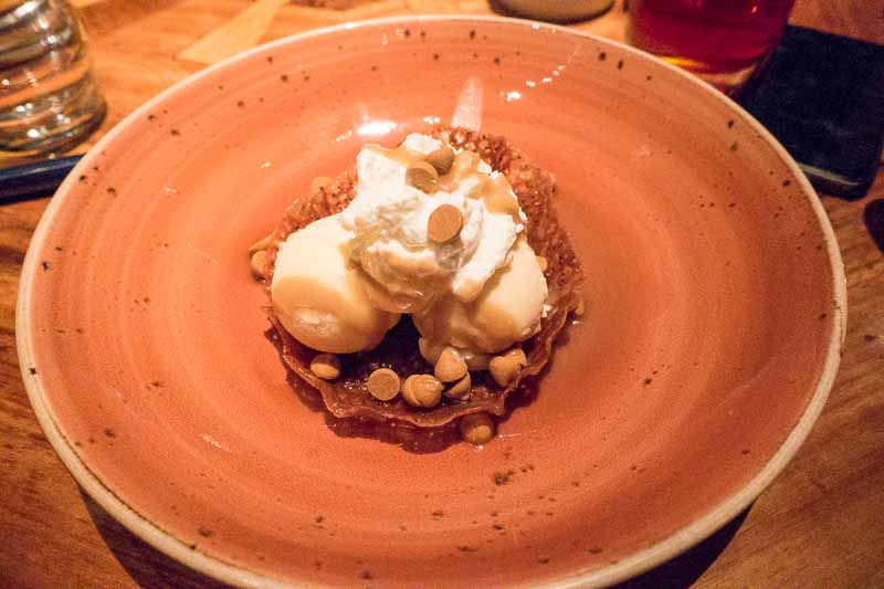 Time for dessert.  You can’t ruin ice cream.  I had the “make your own sundae” with vanilla, chocolate and Bailey’s ice cream and caramel sauce: