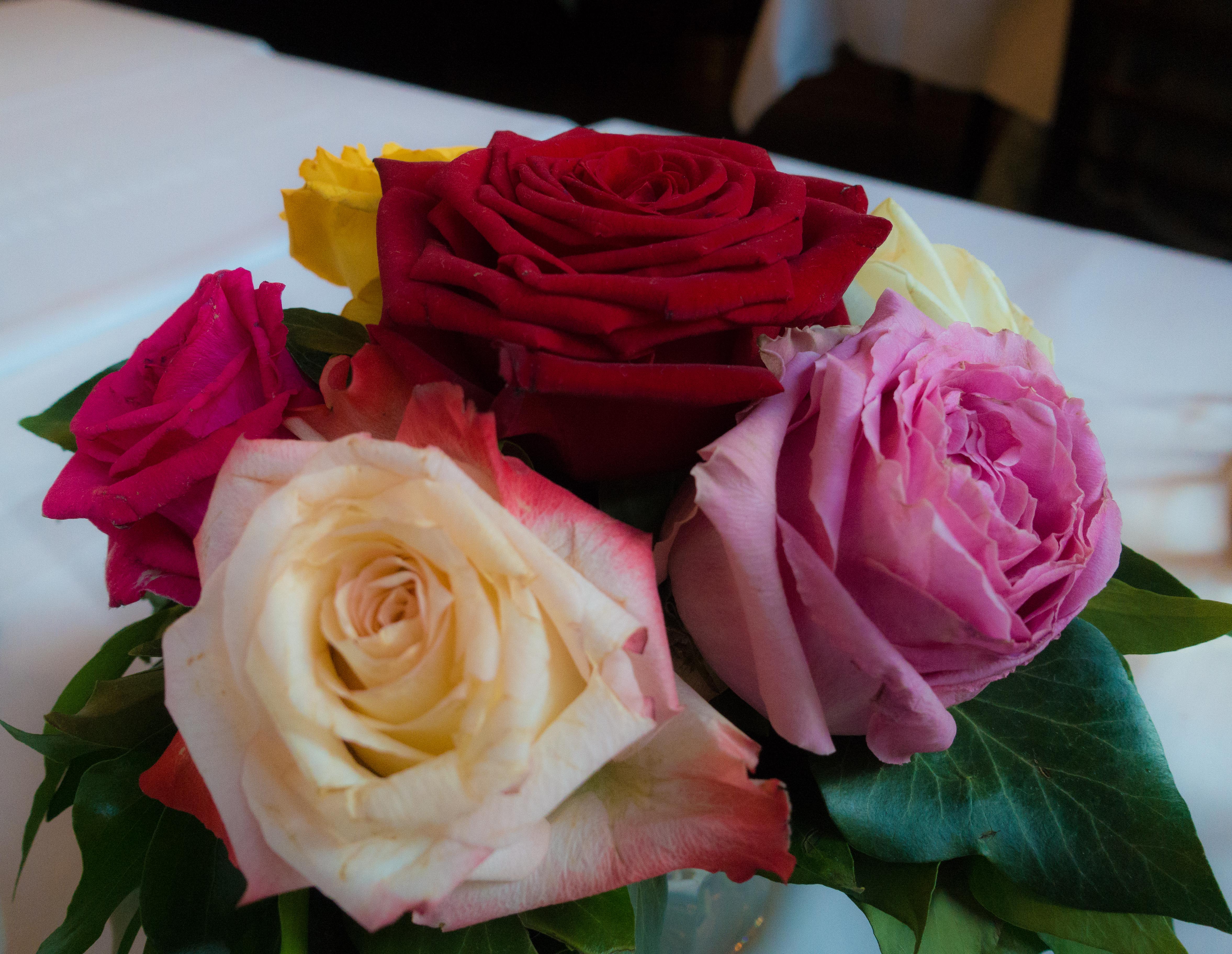 The dining room is what you would expect–rich wood, heavy silver, thick linen. Even the flowers were spectacular: