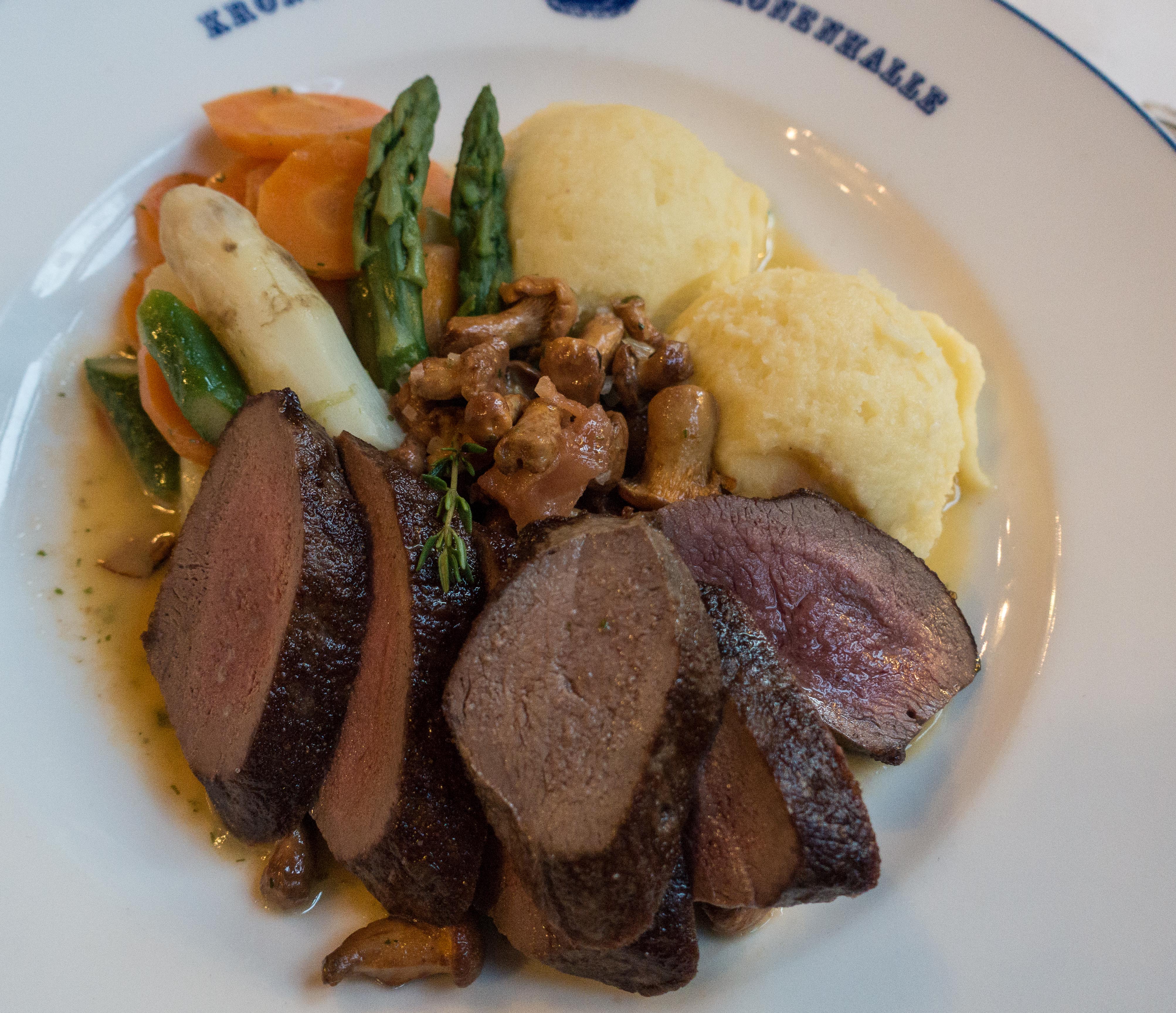 It’s a huge facility, with arched, painted ceilings, an oom-pah band pumping up the crowd, and a horde of staff delivering huge mugs of beer. I got absurdly, stupidly, shamefully drunk here in 1974; I’m glad they let me back in.