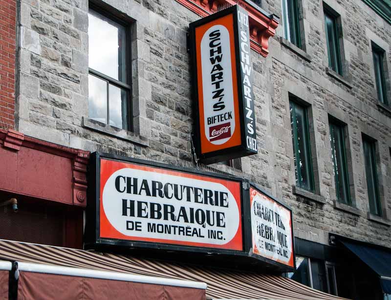 First thing, then, we need lunch. And there is only one choice–when in Montreal you have to have smoked meat. Which would be called pastrami if you were anywhere else in the world. And the place you are supposed to go is Schwartz’s Deli, which has been flogging ‘smoked meat’ here for the last 107 years. it’s supposedly the oldest deli in Canada.