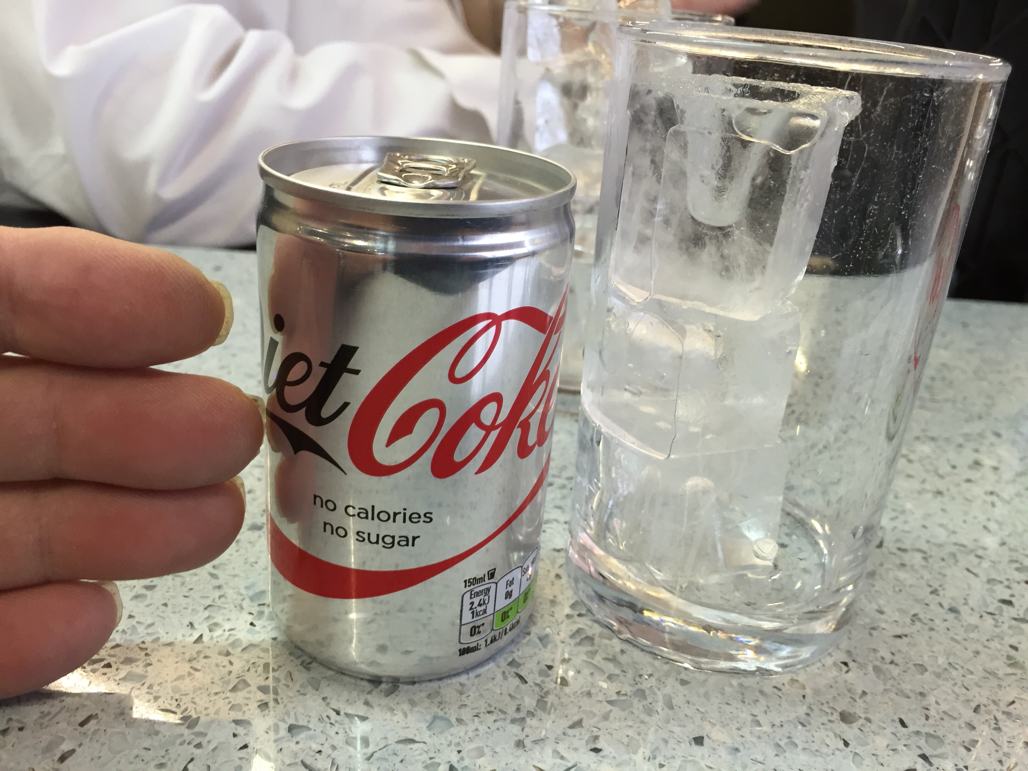 Nonetheless, they serve the tiniest cans of Coca-Cola I have ever imagined. 150 mL, 5 ounces. The original one small bottles Coke came in were 6 1/2 ounces. These are almost a fourth less.