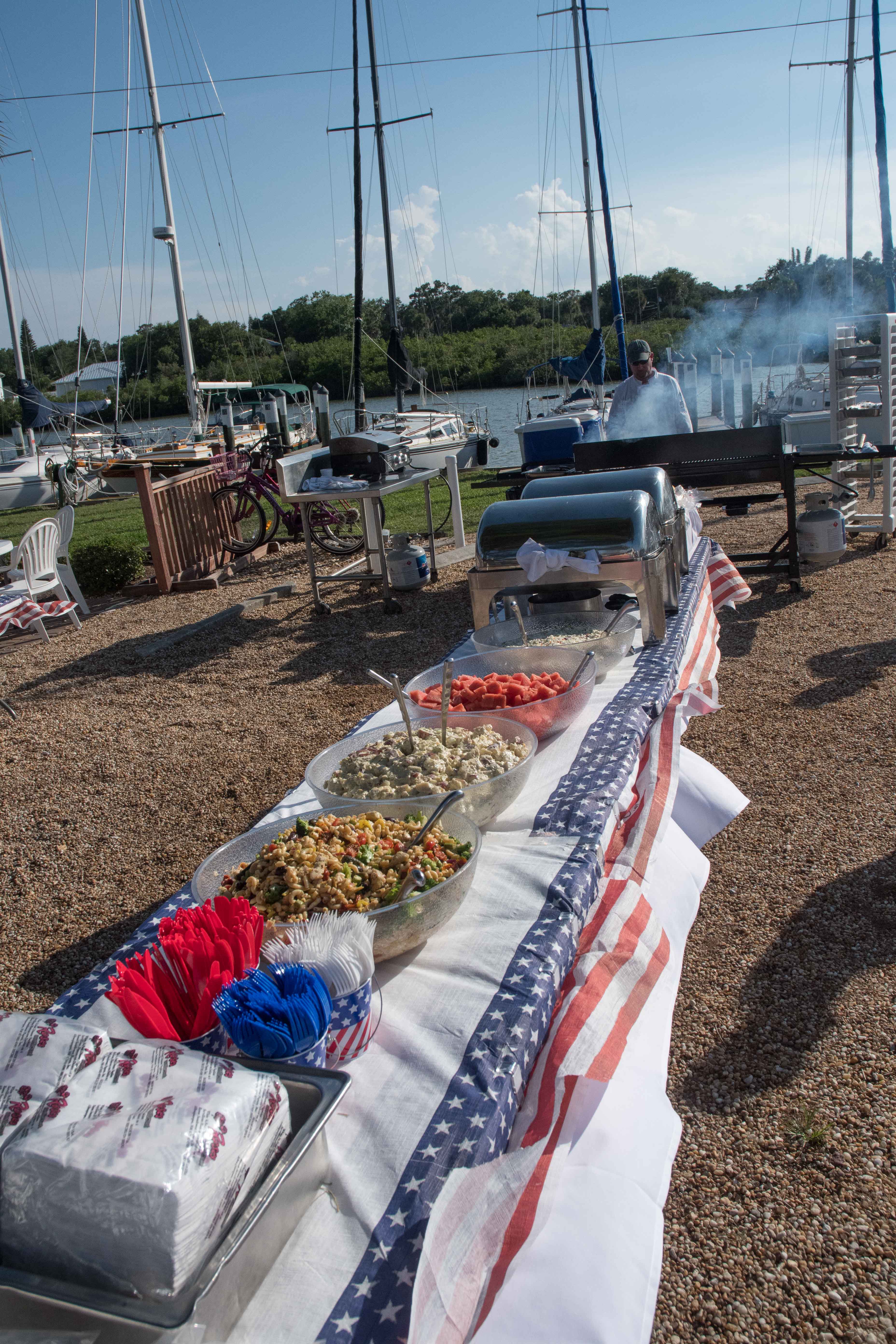 Macaroni salad, potato salad, cole slaw and watermelon. Fried chicken. Beans. A grill with hot dogs and hamburgers. Classic Americana at its finest.