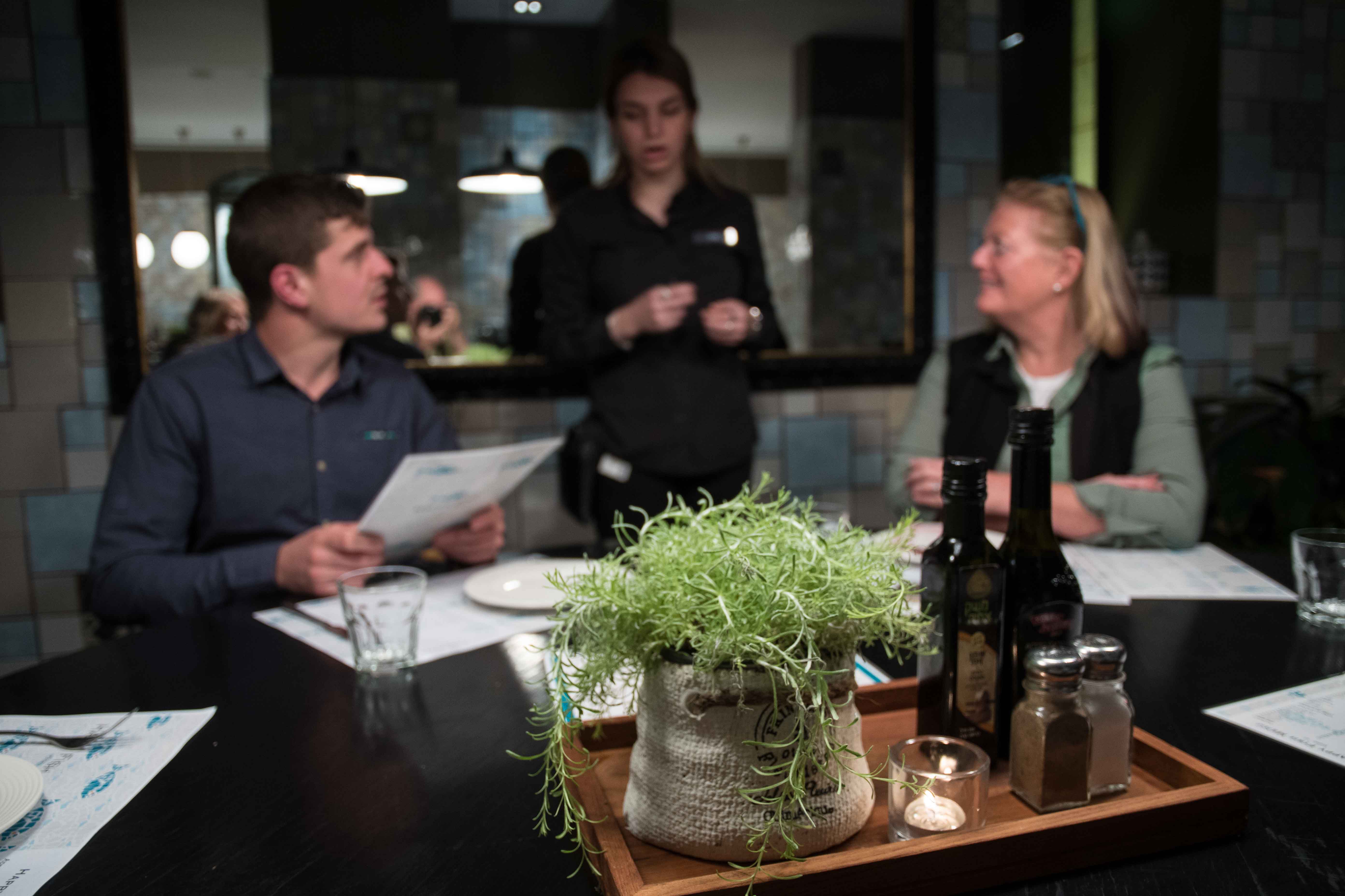 Having dinner at the Happy Fish restaurant, Mamilla Hotel, Jerusalem