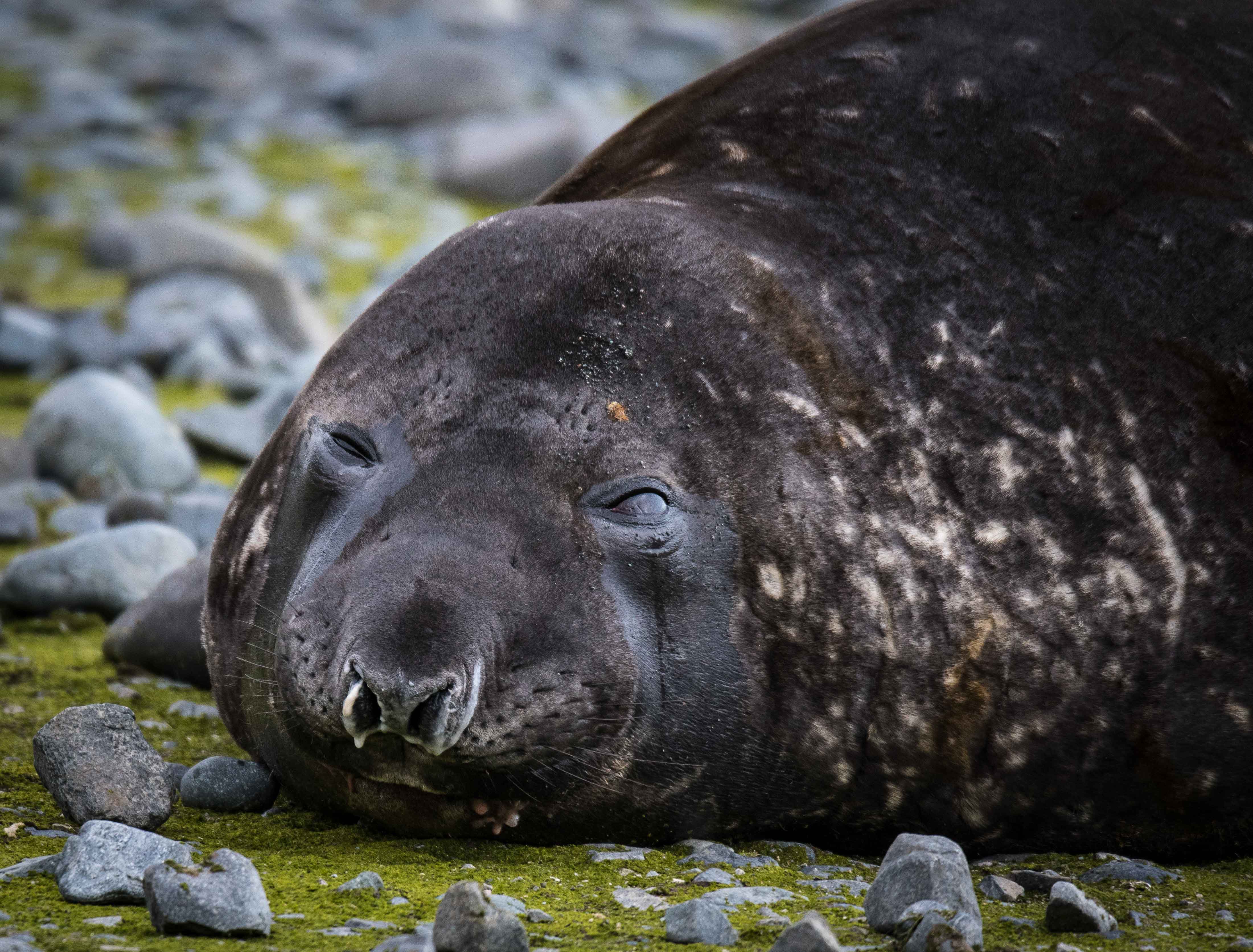 Elephant seal on the beach in Browns Bay, Antarctica