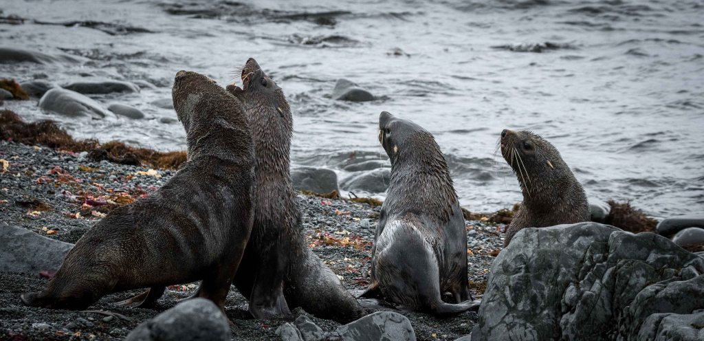 Fur seal on the beach in Browns Bay, Antarctica