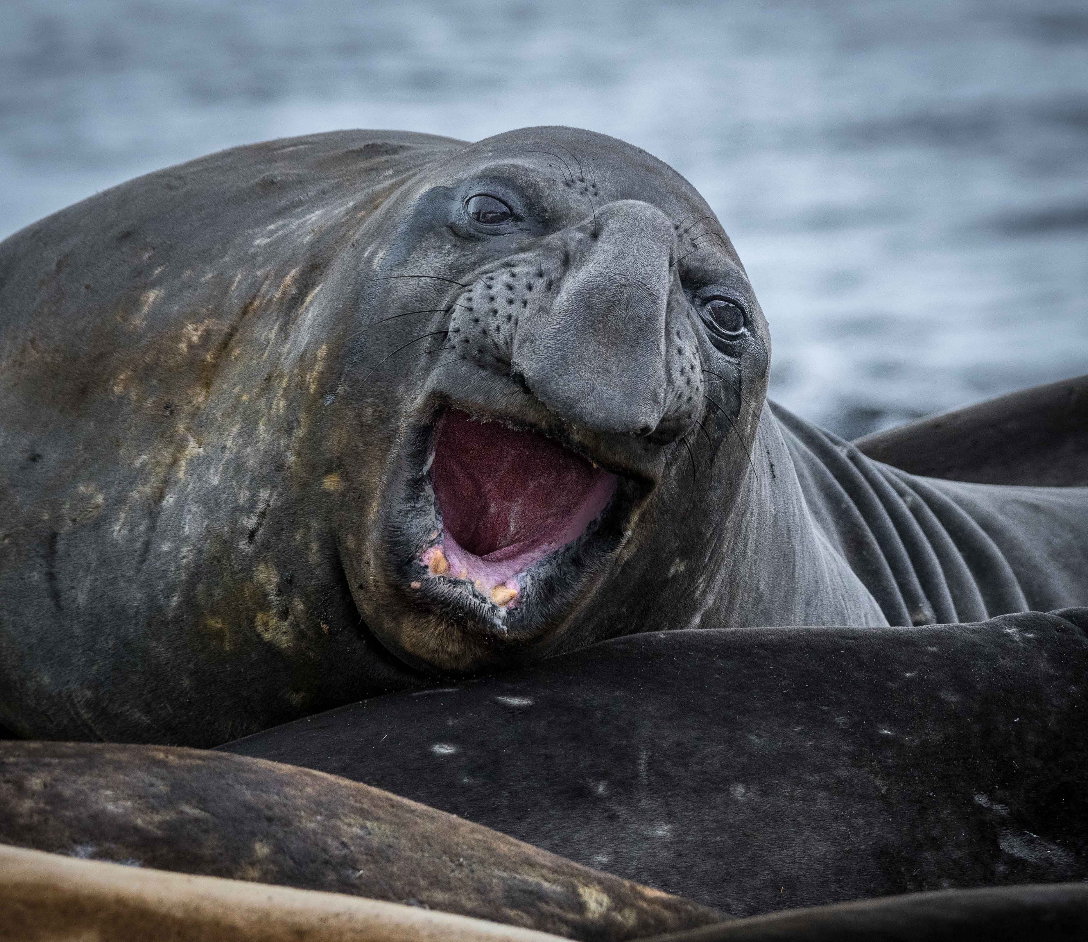 Elephant seal on the beach in Browns Bay, Antarctica