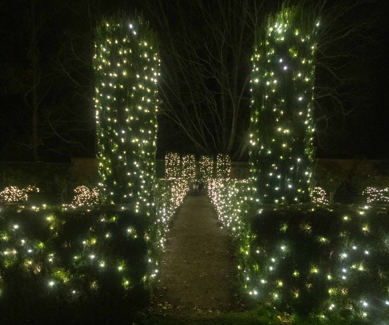The Ruth Bancroft Garden is thinking of making a Christmas light show in the garden, so 15 of us piled into a van and drove to Filoli Mansion on the peninsula to see how the big boys do it.