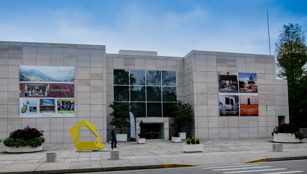 The museum sits on a hill overlooking the site of the 1982 Knoxville Worlds Fair on the site of the Japanese exhibition hall