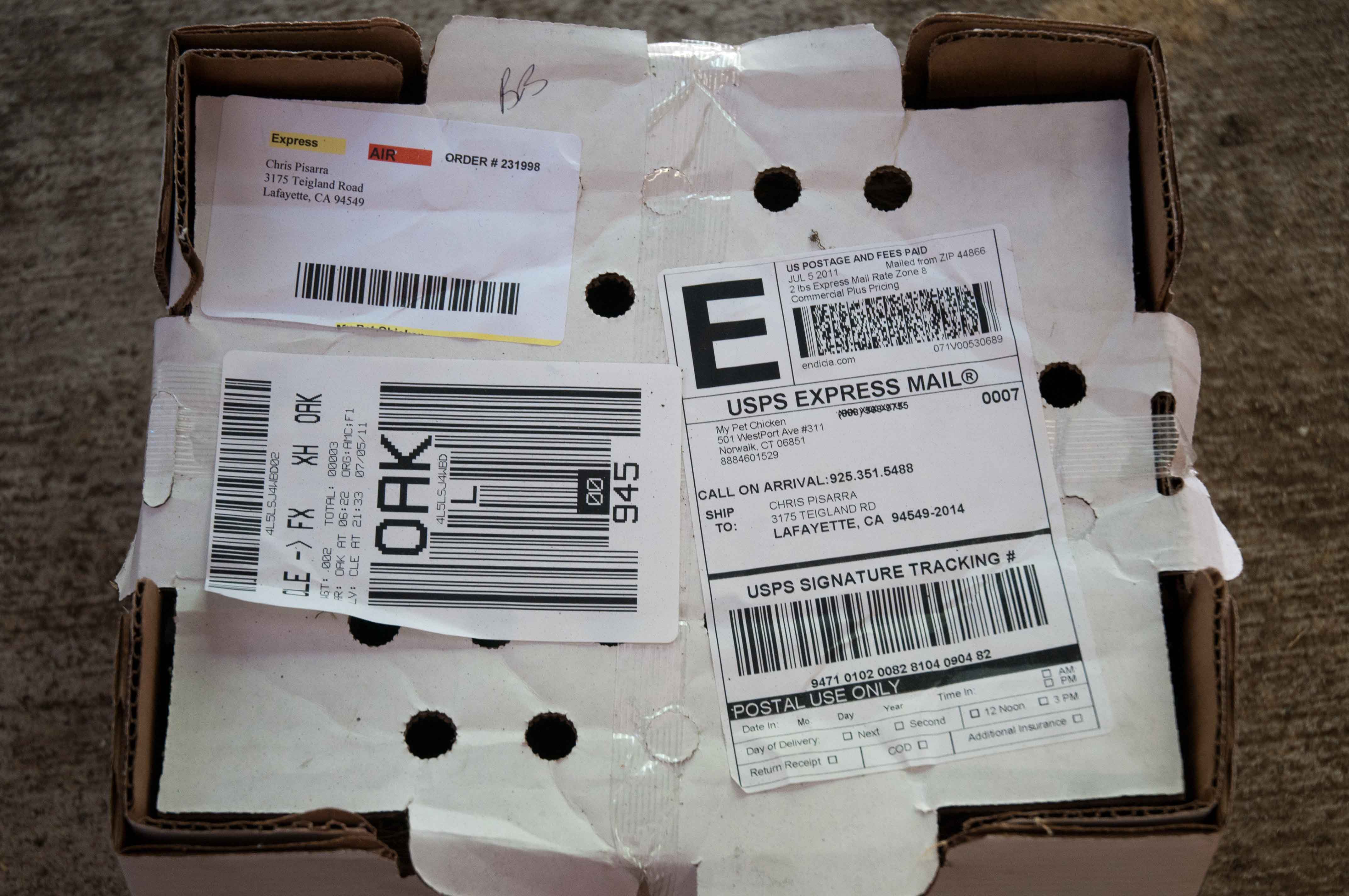 The easy way to get more chickens is to go online and order them. Chicks are shipped US Priority mail. They don’t need to eat for the first 48 hours after they hatch, so the chicken factory takes brand new babies, boxes them up and trots them down to the Post Office.