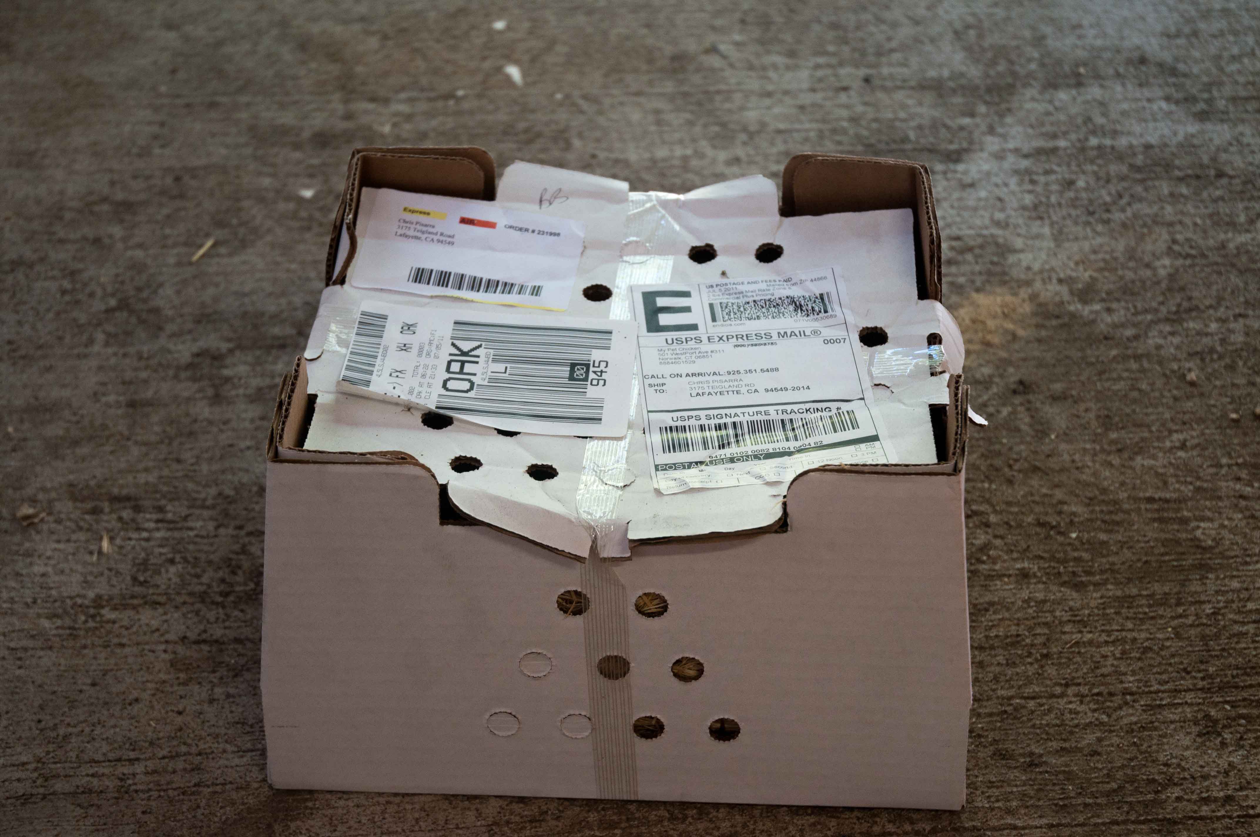When they arrive in Lafayette, the postmaster gives us a call and we go get them.