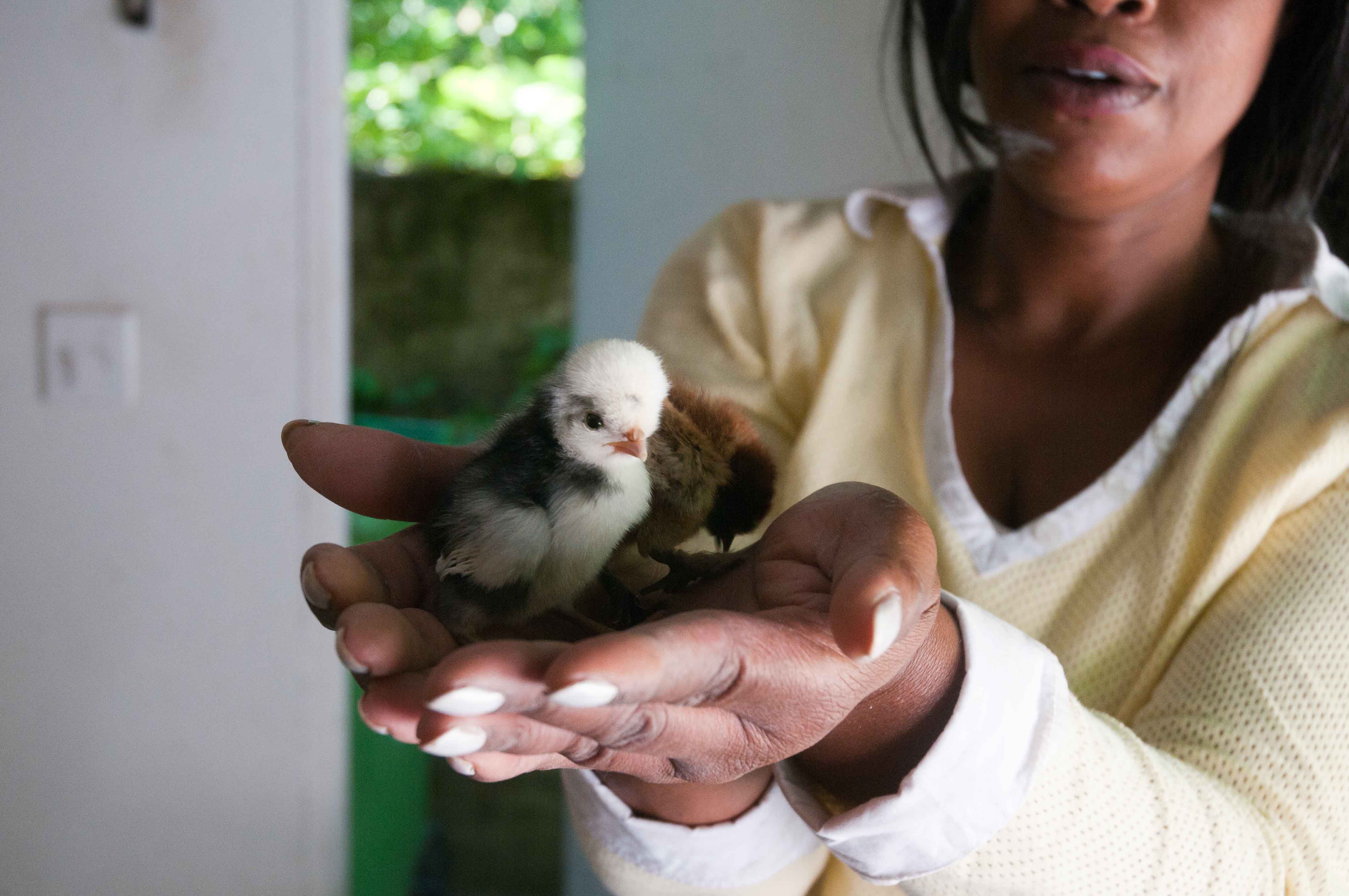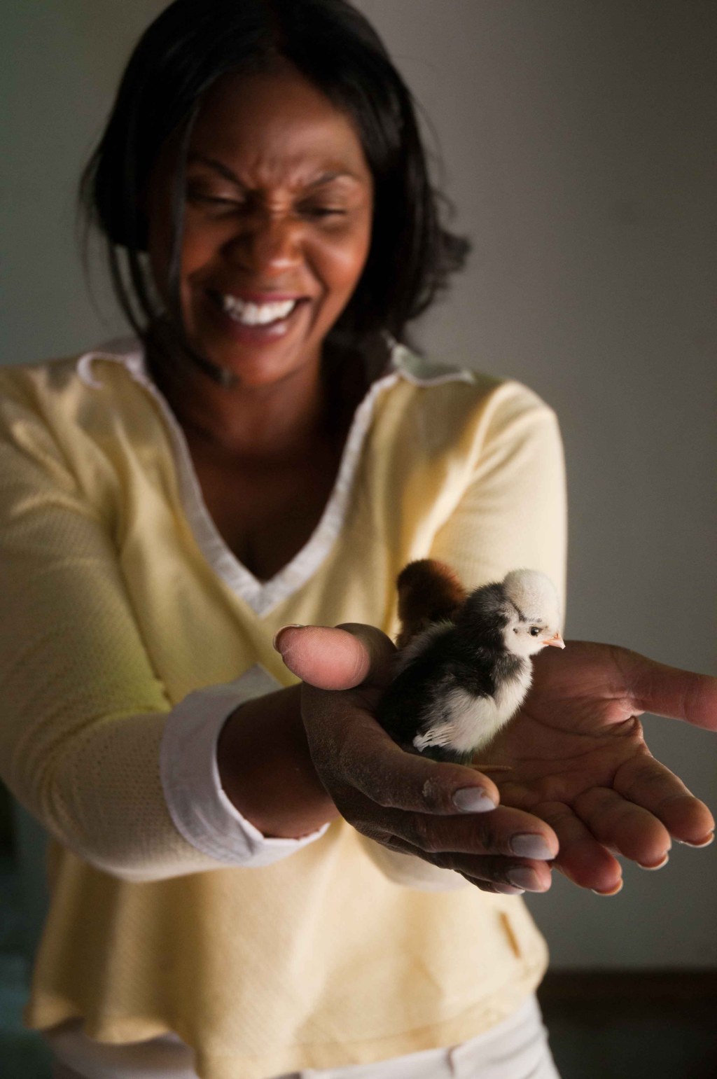 Auntie Lynn takes care of them, but this is the first time she's held a baby chick. They are surprisingly light and tiny.
